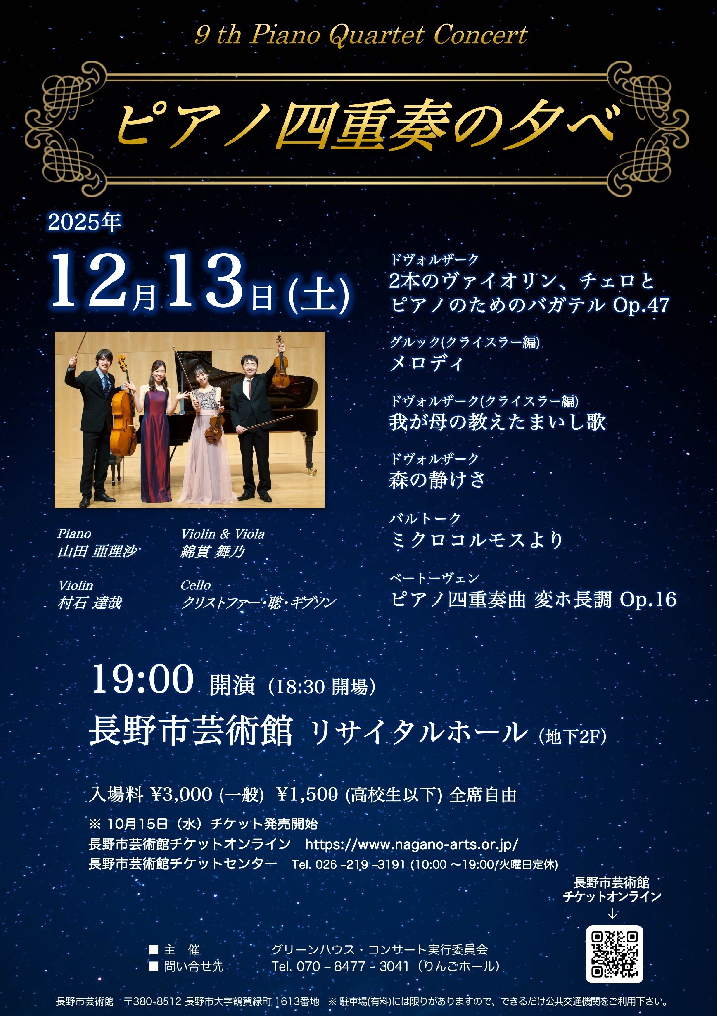 主催・問合せ先 | グリーンハウス・コンサート実行委員会 tel: 070-8477-3041(りんごホール) |