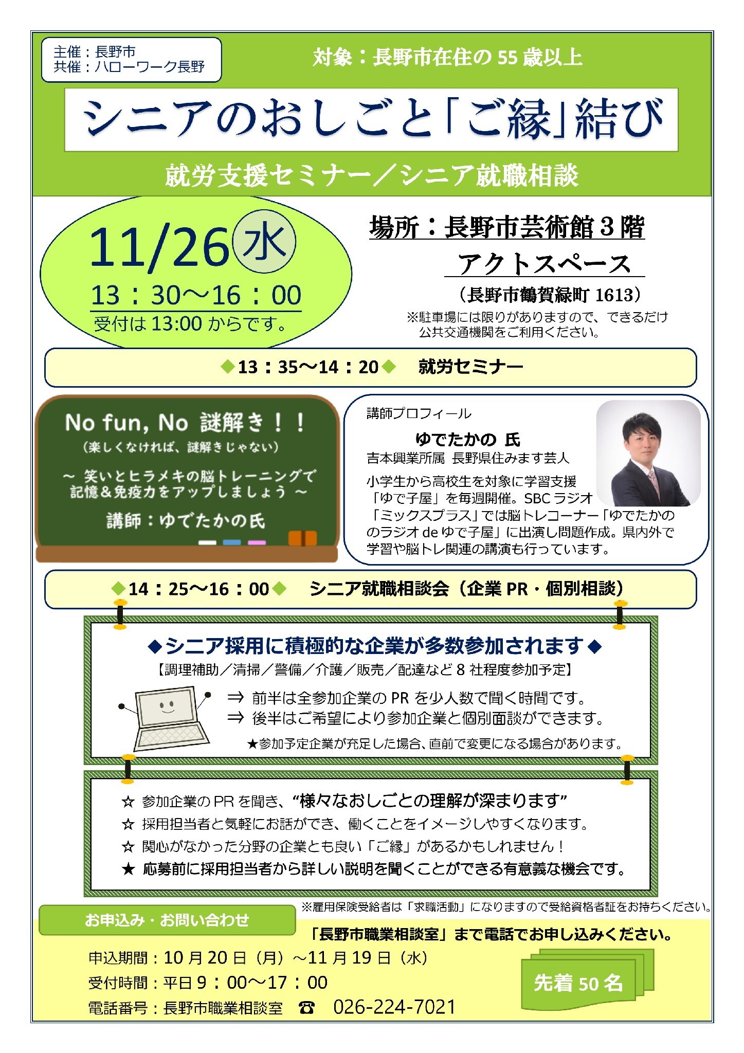 | 主催・問合せ先 | 長野市職業相談室 tel: 026-224-7021 |