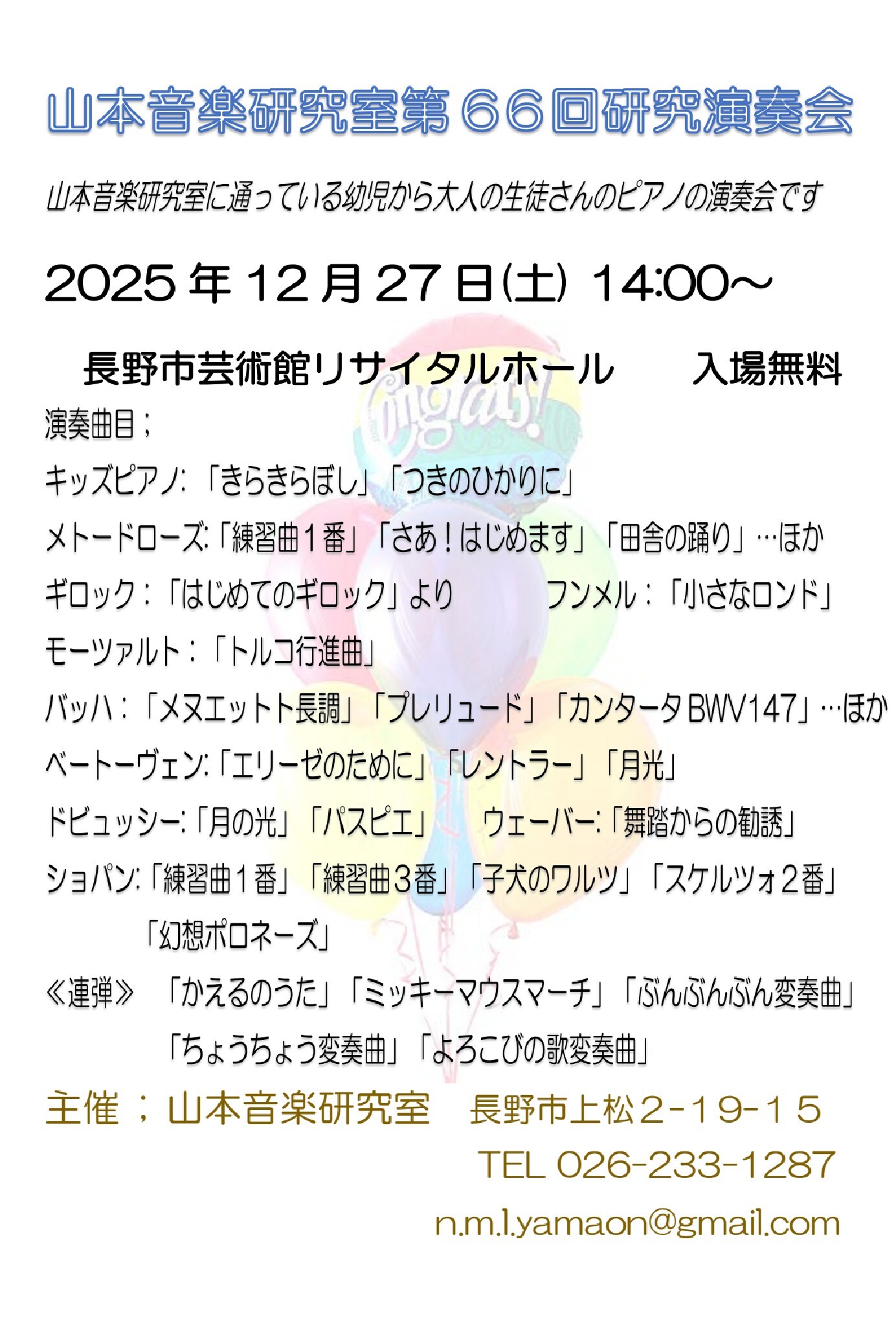 山本音楽研究室 第66回研究演奏会