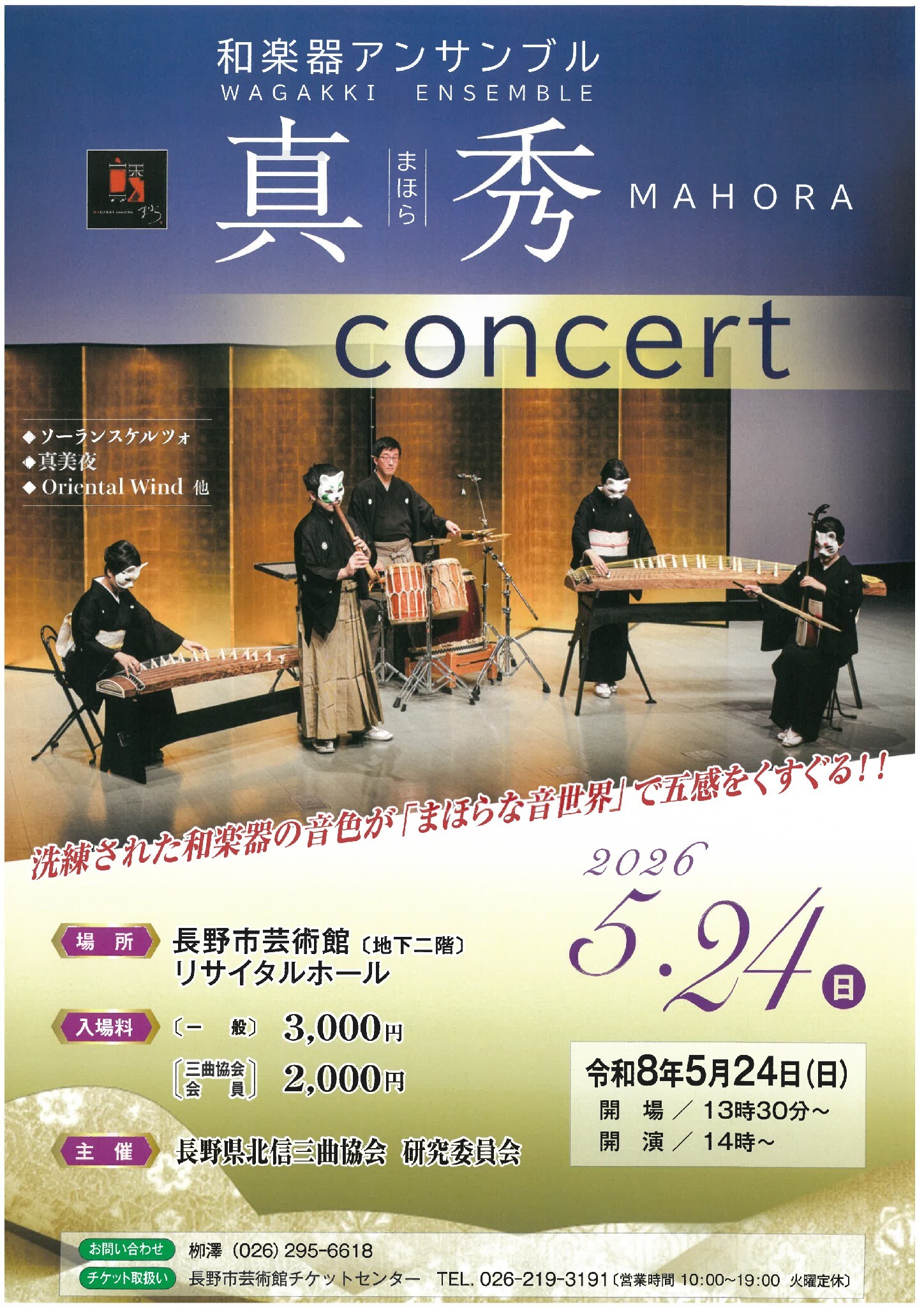 | 主催・問合せ先 | 長野県北信三曲協会 tel: 026-295-6618(柳澤) |