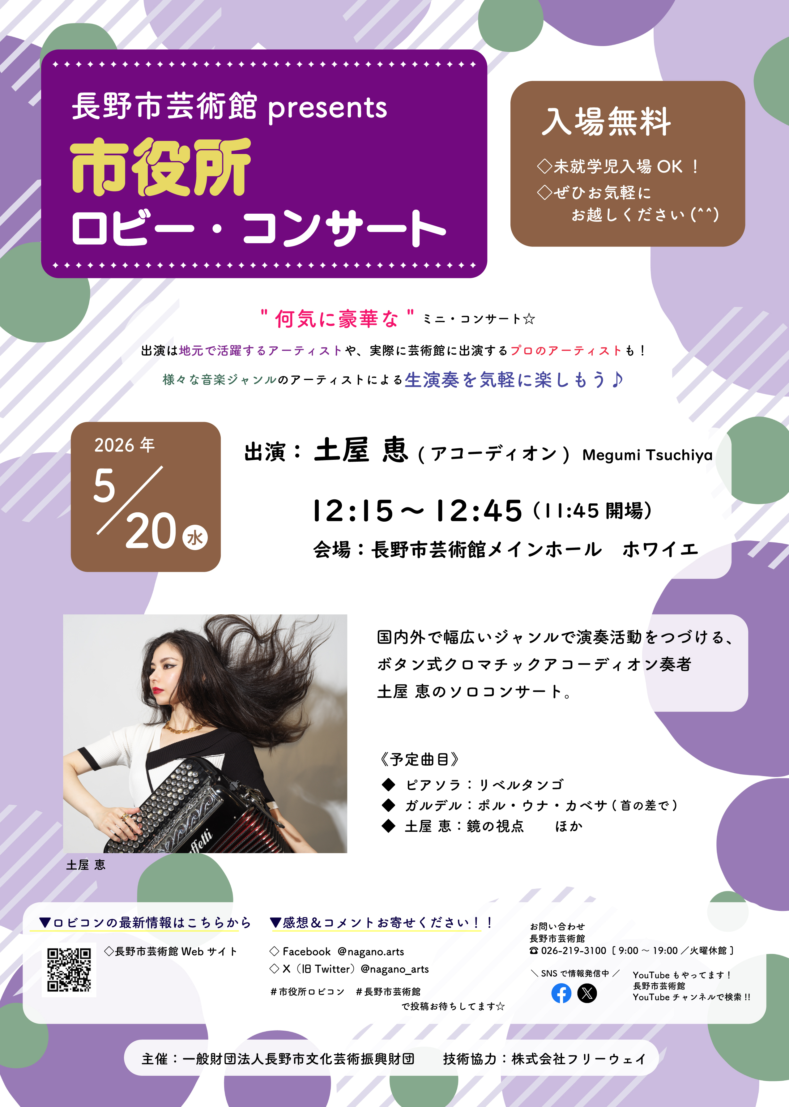 Performances & Events市役所ロビー・コンサート 土屋 恵(アコーディオン)