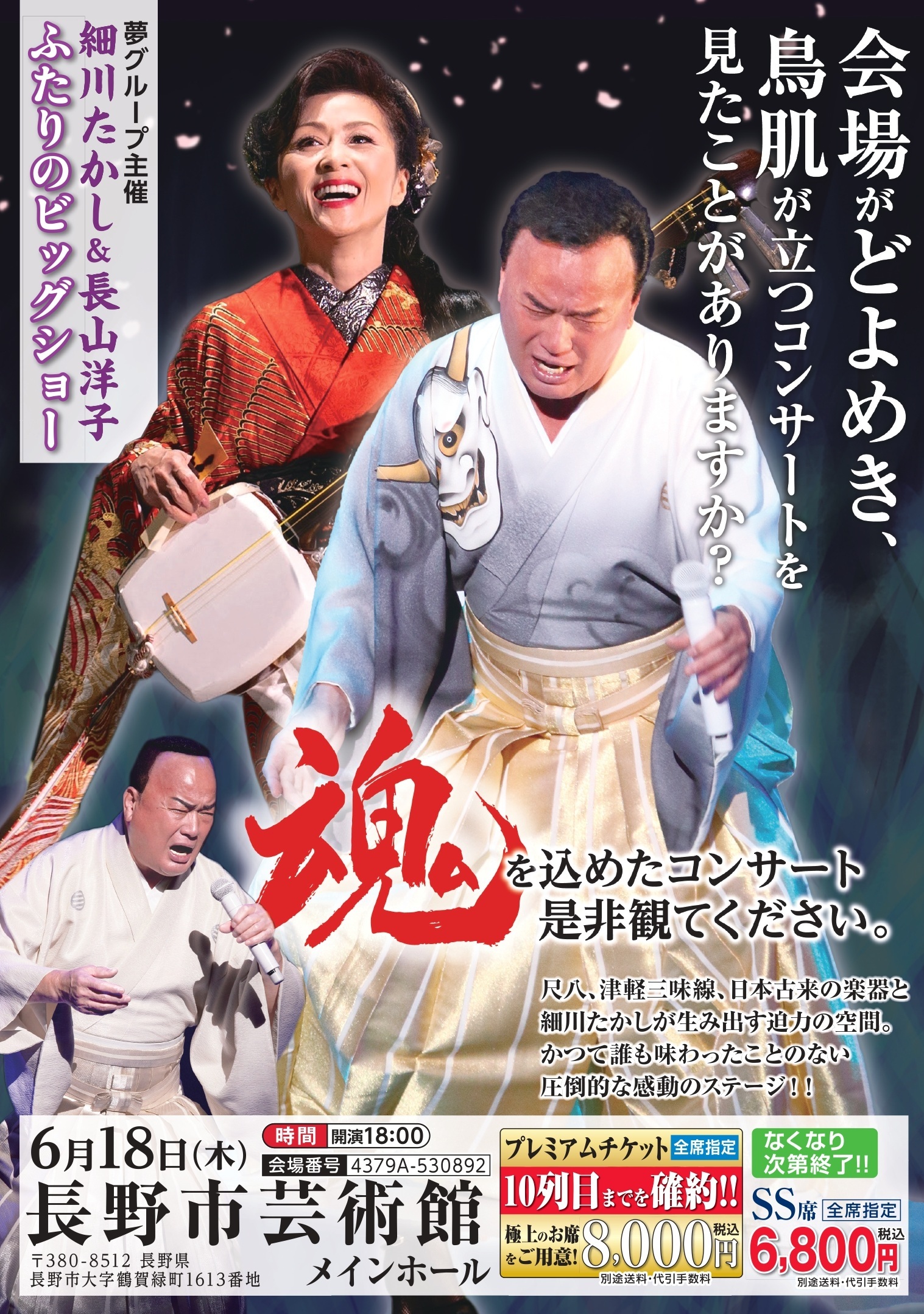 尺八、津軽三味線、日本古来の楽器と細川たかしが生み出す迫力の空間。