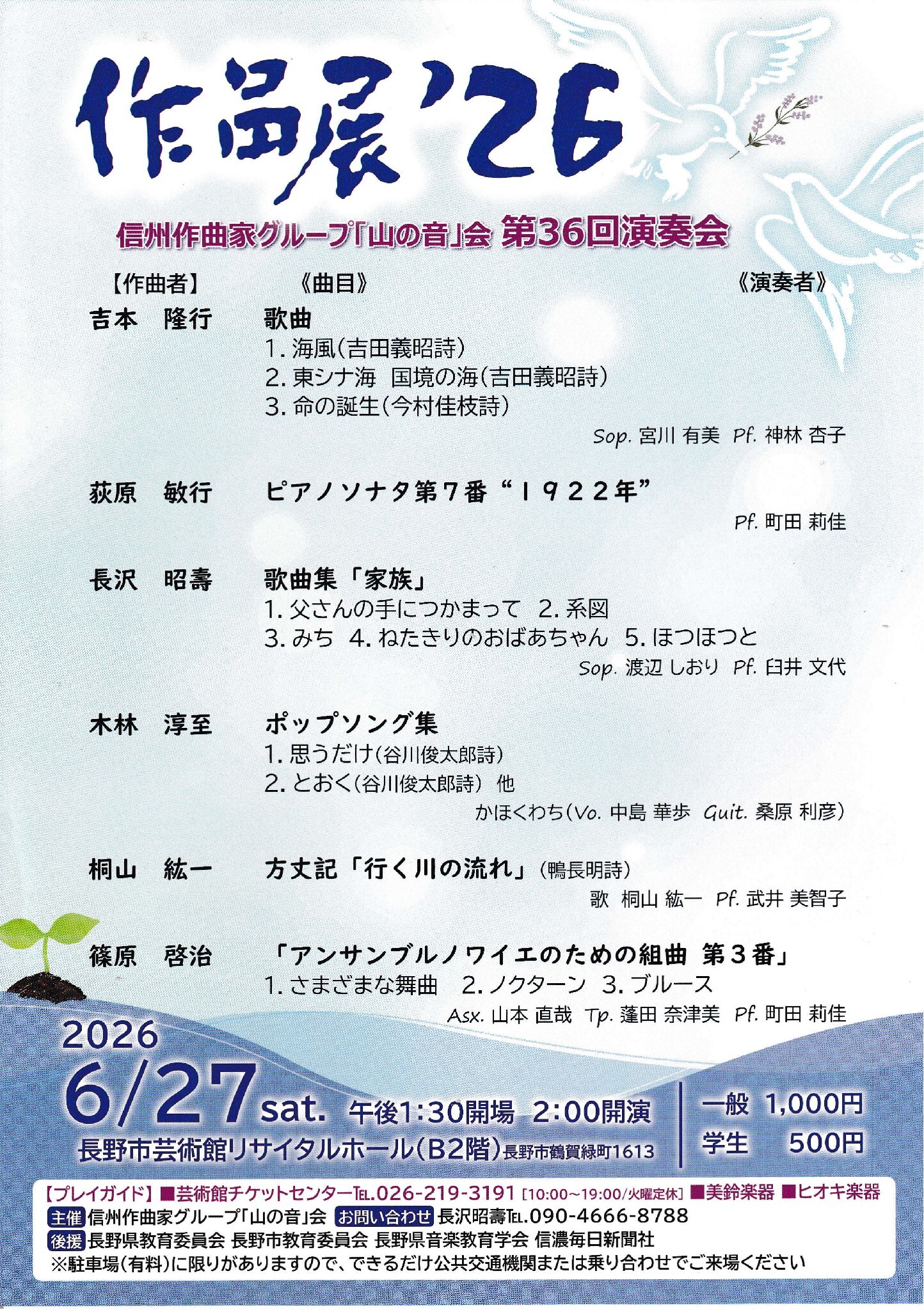 Performances & Events信州作曲家グループ 「山の音」 会 第36回演奏会 作品展’26