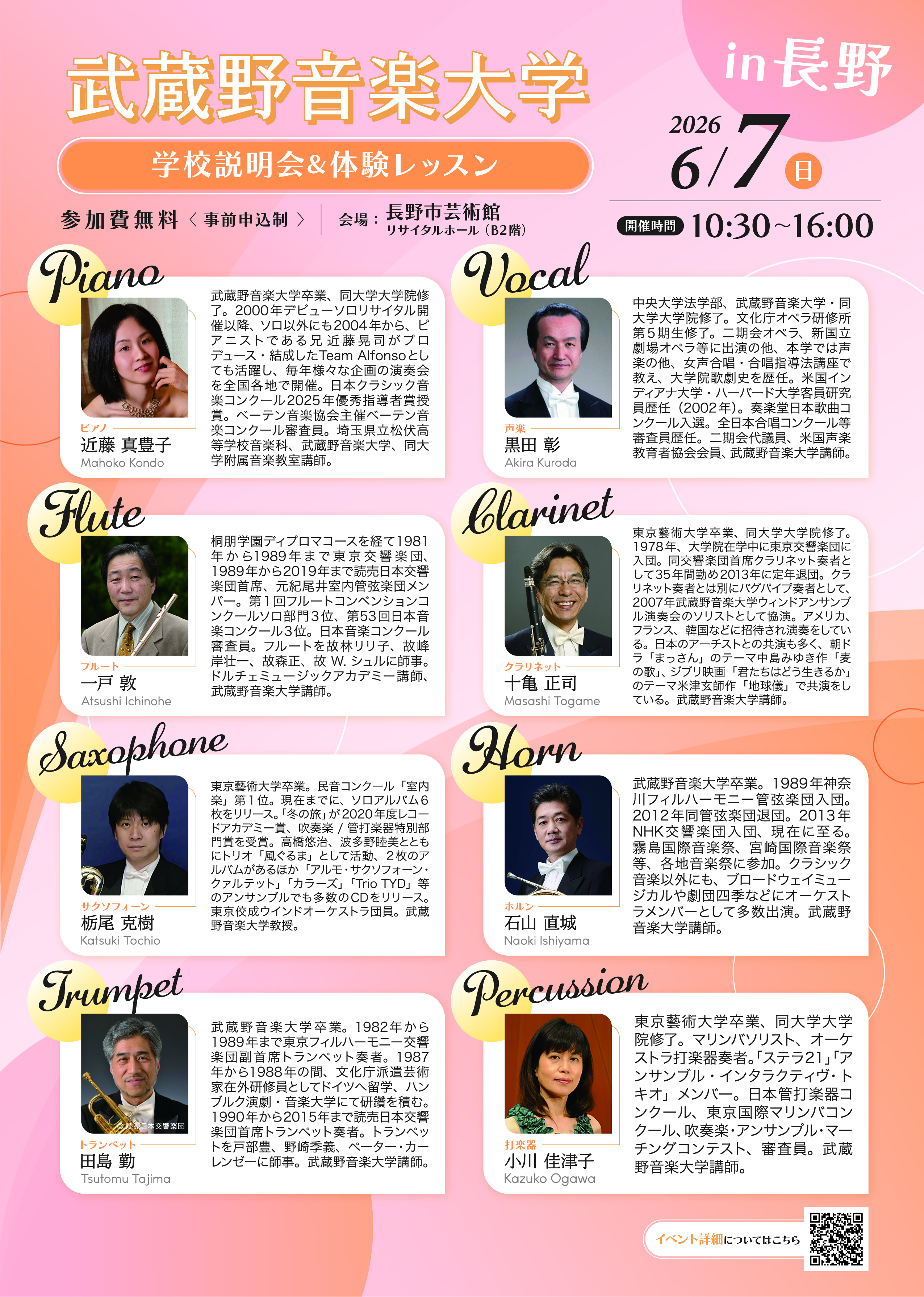 Performances & Events武蔵野音楽大学 学校説明会&体験レッスン in 長野